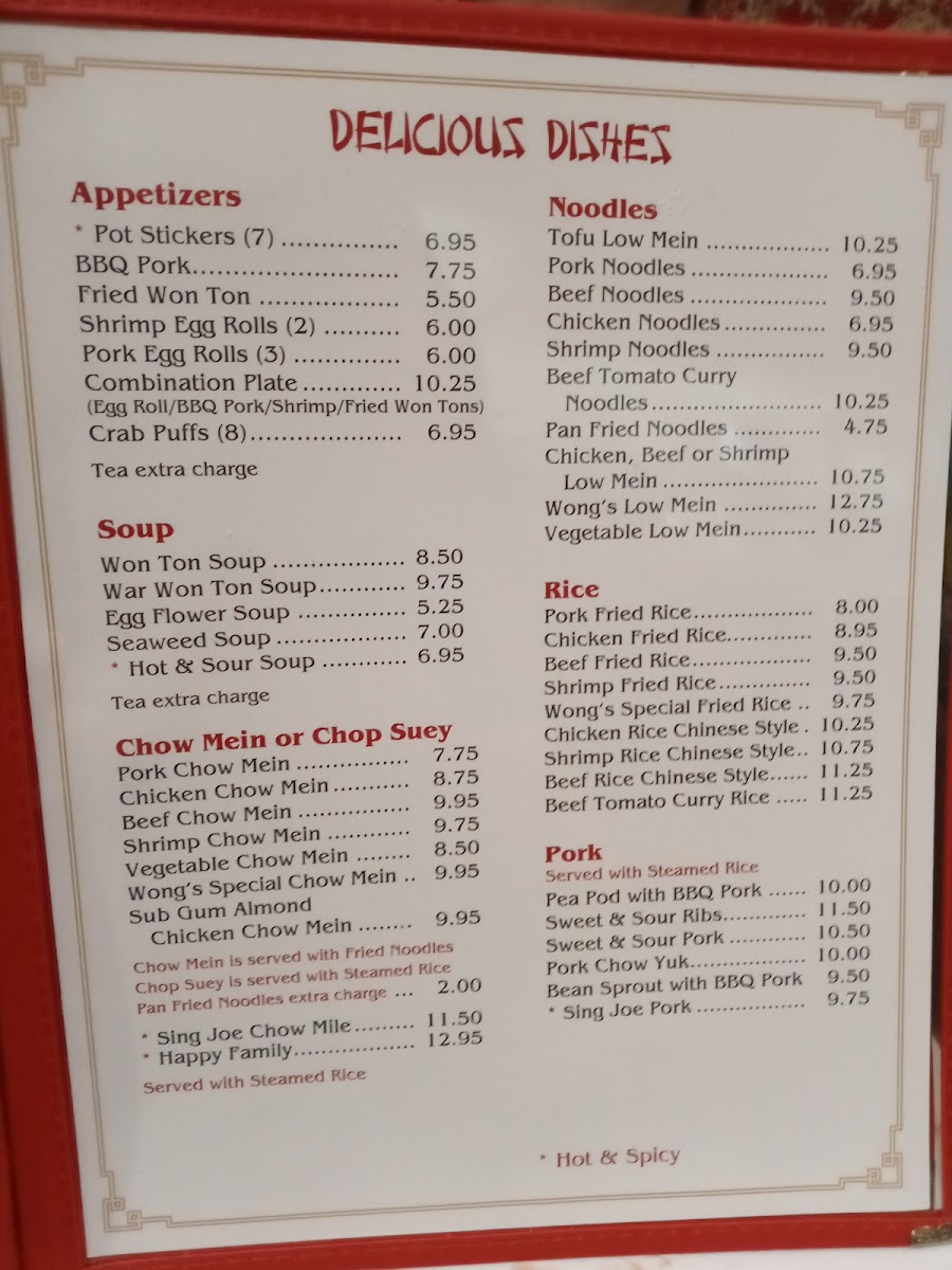 Pork Fried Rice Mar Far Chicken Chicken Chow Mein